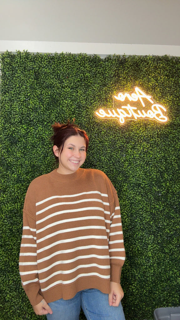 EXPOSED SEAM STRIPED OVERSIZED SWEATER TOTAL BODY LENGTH: 24", CHEST: 53" approx. - MEASURED FROM S/M